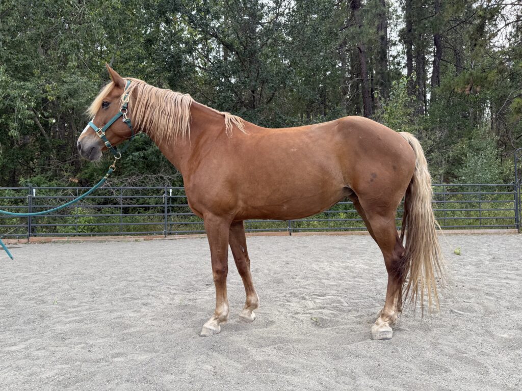 Ember is approx. 14 years old. She is off in the hind end, and stiff. The owner just wants her to be comfortable and happy.